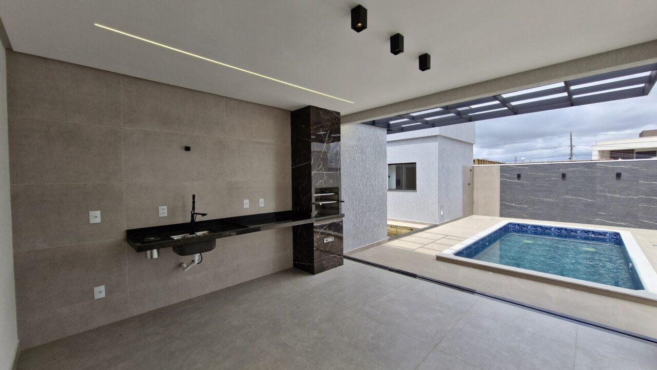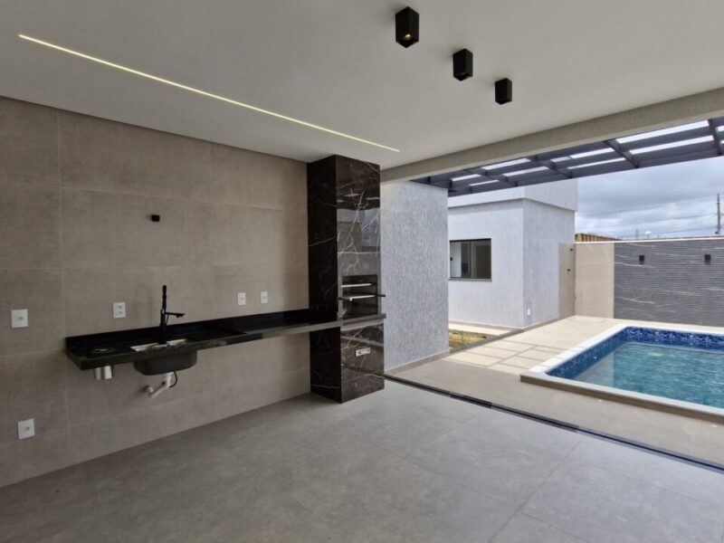 - Piscina com deck e banheiro social exclusivo para área externa.